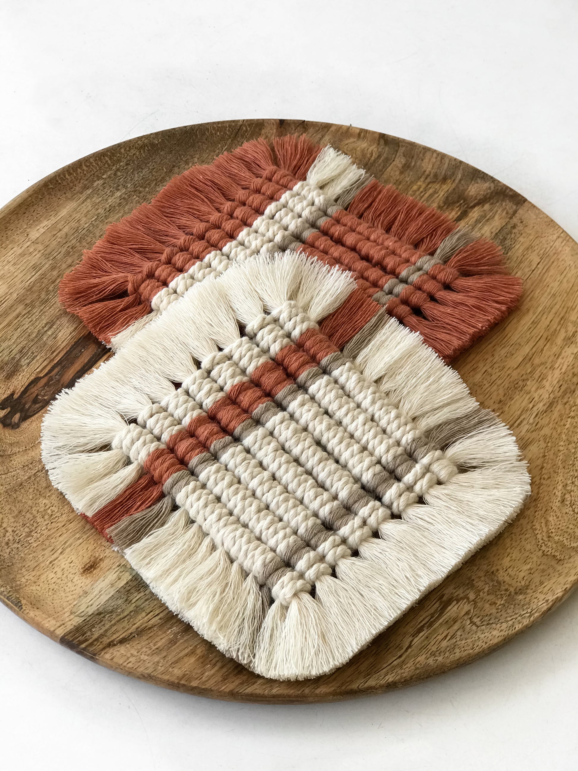 Macramé square coasters - terracotta & sand